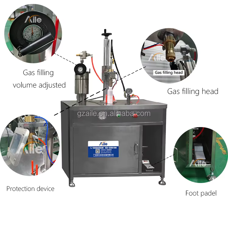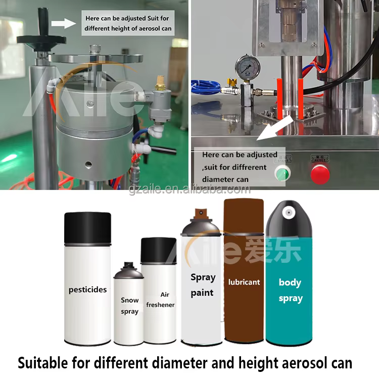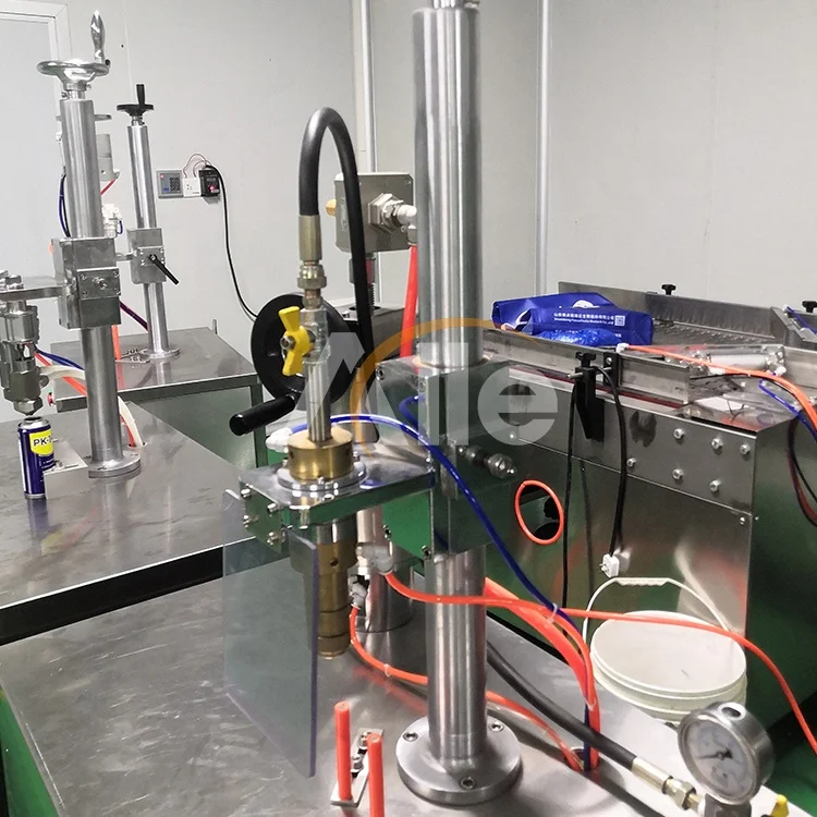 เครื่องนี้มีฟังก์ชันการบรรจุก๊าซ เหมาะสำหรับการผลิตสเปรย์กระป๋องแก๊ส LPG แบบพกพา เครื่องมีขนาดพื้นที่เล็กและใช้งานง่าย แต่ละสถานีสามารถดำเนินการแยกกันได้ เหมาะมากสำหรับธุรกิจขนาดเล็กหรือธุรกิจใหม่